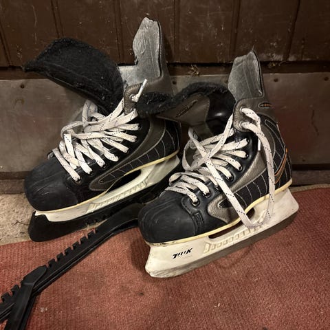Siistit ja hyväkuntoiset CCM Tacks 9350 luistimet, koko 24 joka centtikoossa vastaa 14,5cm.