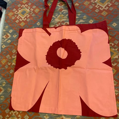 MarimekkoUnikko kangaskassi unisex. Materiaalina kestävä kangas. Kassissa on luonnonvaalea pohjaväri ja suuri monivärinen sateenkaaren sävyinen Unikko-kukkakuvio edessä. Kassi on mitoiltaan noin 42x 44cm, ja siinä on kahdet kantokahvat olalla tai kädessä kantamiseen. Sopii arjen kantokassiksi, ostoskassiksi tai koululaukuksi postit 8.90