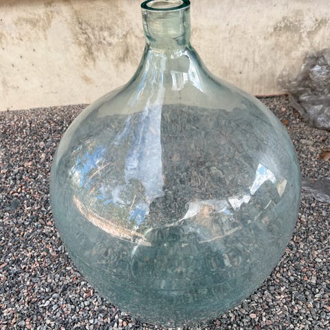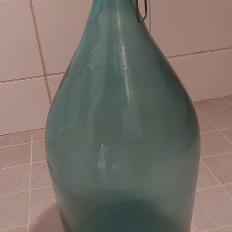 Myynnissä puhallettua lasia ( sisällä kuplia ) oleva wanha turkoosi lasipullo. Narukoristeet irrotettavissa.Korkeus 30 cm, pohjan halkaisija 14 cm.