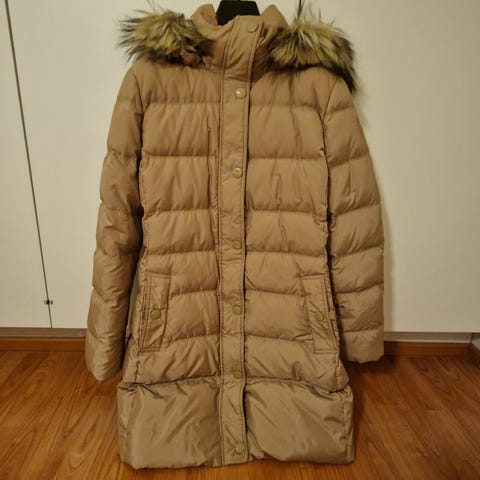 Todella lämmin untuvatakki Tommy Hilfiger. Väri kaunis tumman suklaan ruskea, osassa kuvia väri narraa huolella. Ihanan pitkä ja istuva malli, hihansuissa lämpimät resorit, tilava huppu, jonka saa pois. Mahtava vuori"silkki", sujahtaa helposti päälle. Lämmin täyte untuvan ja höyhenen sekoitusta.