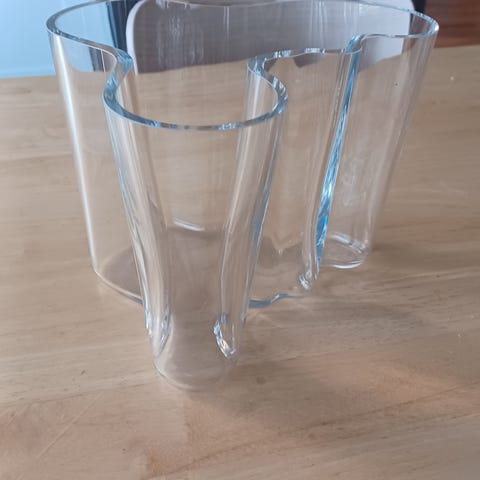 Iittala Aalto maljakko valkoista lasia. Orgaanisen, aaltoilevan muotoinen maljakko sopii erilaisten kukka-asetelmien esillepanoon tai sisustusesineeksi sellaisenaan. Valmistettu lasista, pinnassa Iittalan logo. Hp 215€