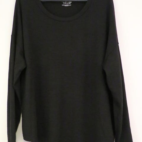 Time and Tru-merkkinen kevyt neule viskoosi/polyester/spandexia. Kokolapun koko 20 vastaisi kokoa 48, mutta on reiluhko; kainalomitta 71cm, kokopituus 69cm.