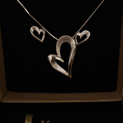 Kauniit purje-aiheiset hopeakorut. 925 hopeaa. Korvakorut ja kaulakoru alkuperäisessä rasiassa.