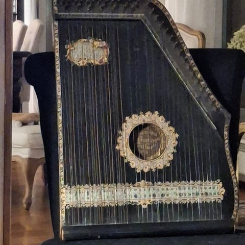 Puinen pieni harppu, jossa koristeellinen veistos yläosassa. Sopii soitettavaksi tai sisustuselementiksi esimerkiksi olohuoneeseen tai musiikkihuoneeseen. Tämä pieni harppu on käsintehty suomalaisesta puusta. Siinä on 19 fluorocarbon-kieltä. Se on kauniisti veistetty. Siinä on miellyttävä, hienovarainen ääni; sitä ei ole tarkoitettu konserttisoittimeksi.