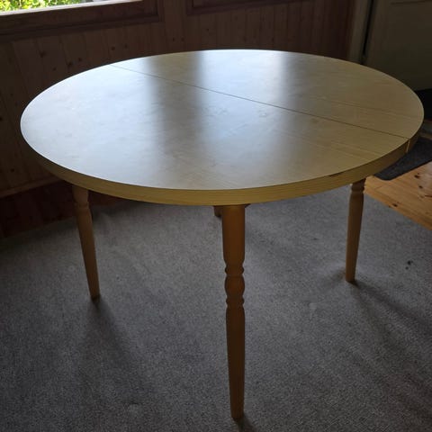 Kompakti puinen pyöreä ruokapöytä jäänyt ylimääräiseksi muuton myötä. Jonkin verran kulumaa mm. jaloissa.