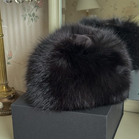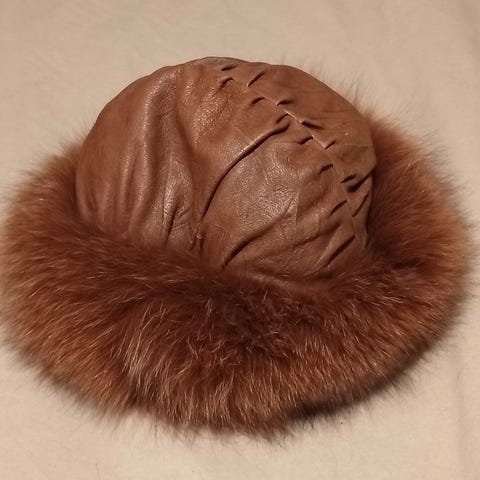 Vintage fur hat for that mob wife look. Warm and cute. In very good condition 🫶🏽 Diameter is more or less 15/16cm and length up to 15cm as well -- covers part of the ears. Selling for 20€ for pick-up or for purchase through ToriDiili.