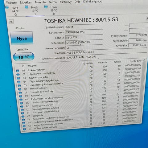 Testattu ja tyhjennetty NAS-käytöstä tulleet, 7200rpm, SATA 6Gb/s liitännät.