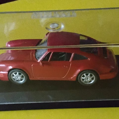 Porsche pienoismalli, hopeanvärinen leluauto. Autossa on avattavat ovet, konepelti ja takaluukku. Mallissa on sisätilat ja yksityiskohtia, kuten istuimet ja kojelauta. Auton alla on nahasta ja puusta valmistettu alusta. Sopii koristeeksi tai käytettäväksi yövalona nukkumiseen.