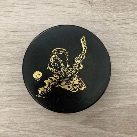 Kuvat puhukoon puolestaan. Ehjä, ryhdikäs ja ei haise vanhalle tai tunkkaisella. Näitä ei ole myynnissä koska 80 luvulla käytettiin koulussa ym ja saivat kovaa kohtelua. Sopii niin jääkiekkoaiheen keräilyyn kuin myös laukkujen keräilijälle.