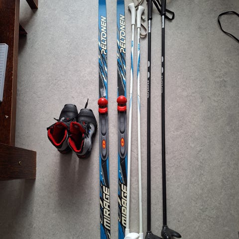 Lapsille harjoitteluun soveltuvat sukset. Ostettu pari vuotta sitten mutta ollut vähäisellä käytöllä. Suksien pituus 90cm ja sauvojen 70cm. Nouto Lehmosta.