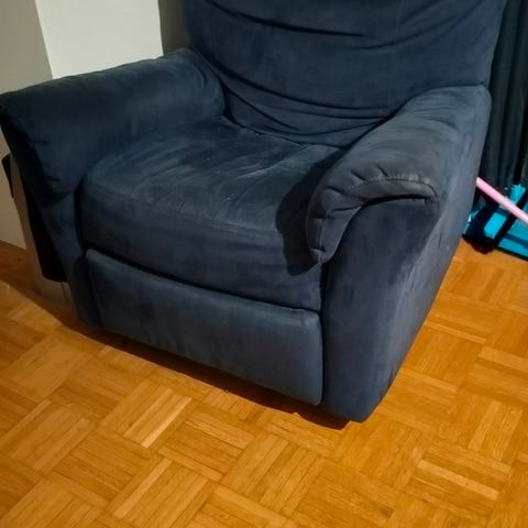 Jalkarahi, selkänoja menee taakse ja tuoli pyörii