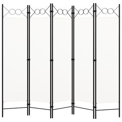 Vapaasti seisova ja käytännöllinen 5-paneelinen tilanjakaja sopii tilan jakamiseen, yksityisyyden lisäämiseen tai koristeeksi. Se tarjoaa ihanteellista yksityisyyttä makuuhuoneeseen tai jakaa huoneen osiin. Yläosan ympyräkuviot lisäävät eleganssia.