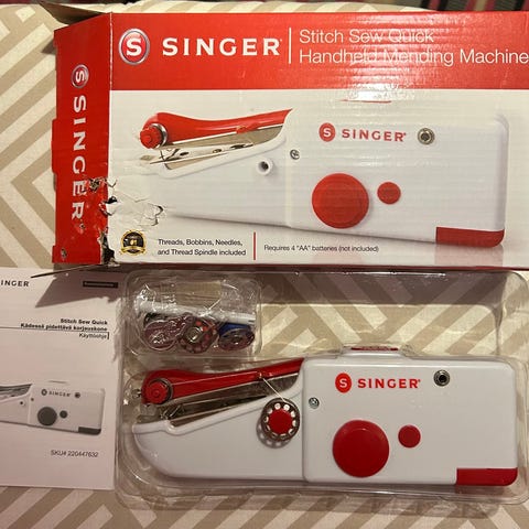Singer Stitch Sew Quick käsikäyttöinen ompelukone on paristokäyttöinen mending-laite pienten ompelutöiden ja korjausten tekemiseen. Laite on kompakti ja kevyt, joten sitä on helppo käyttää ja säilyttää. Ompelukone tekee suoraa ommelta ja soveltuu esimerkiksi vaatteiden, verhojen ja muiden tekstiilien nopeisiin korjauksiin. Toimii 4 AA-paristolla (eivät sisälly pakkaukseen). Pakkauksessa mukana neuloja, puolia ja lankaa (valmistajan pakkauksen mukaan).Nouto tai postitus.Käteinen tai mobilepay.