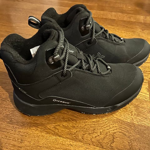 Lämpimät ja monikäyttöiset talvikengät, joiden pohjassa on 16 teräsnastaa. Puolikorkea varsi tukee nilkkaa. EVA-välipohja vaimentaa ja tuntuu miellyttävältä. Pienehkö koko. Suosittelemme valitsemaan yhtä tai kahta kokoa tavallista suuremman.Icebug Speed2 BUGrip -kengät sopivat kaikenlaisiin talviharrastuksiin ulkona. Ne sopivat niin metsässä samoiluun kuin arkikäyttöönkin. Ergonominen malli on hieman tavallisia kenkiä leveämpi.Päällinen on kestävää ja helppohoitoista materiaalia. Vedenpitävä Bugdri®-kalvo. Puolikorkea varsi antaa lisävakautta. Tekstiilimateriaali on valmistettu bluesign®-merkitystä, kokonaan kierrätetystä GRS-sertifioidusta PET-polyesteristä ja ProtecPU-materiaalista.Mukava ja eristävä fleecevuori.Tukeva EVA-vaahtomateriaalinen välipohja vaimentaa, tukee ja tuntuu miellyttävältä.Ulkopohjassa on 16 teräsnastaa, jotka takaavat erittäin hyvän pidon lumella ja liukkaalla alustalla. Pohja on 20-prosenttisesti kierrätettyä kumia.