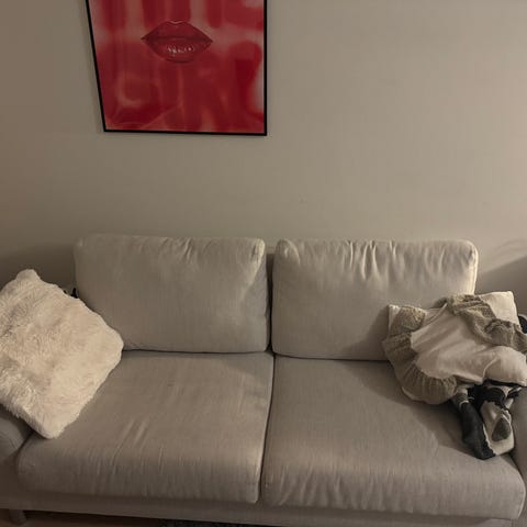 IKEA sohva, irroitettavat ja konepestävät päälliset. Väri vaaleanharmaa. Suora malli, jossa käsinojat molemmilla puolilla ja matalat jalat. Hyvässä kunnossa oleva sohva.
