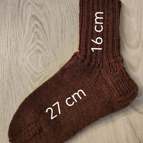 Käsintehdyt traktorikuvioiset villasukat. Sukat on tehty ohuista, mutta kestävistä langoista. Ne mahtuvat hyvin talvikenkiin. Sukissa on vahvistettu kantapää.