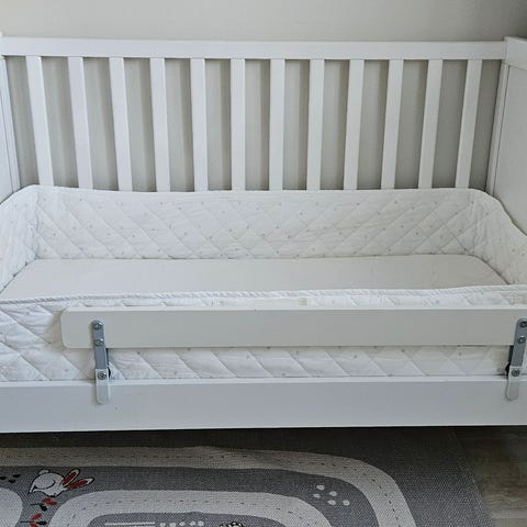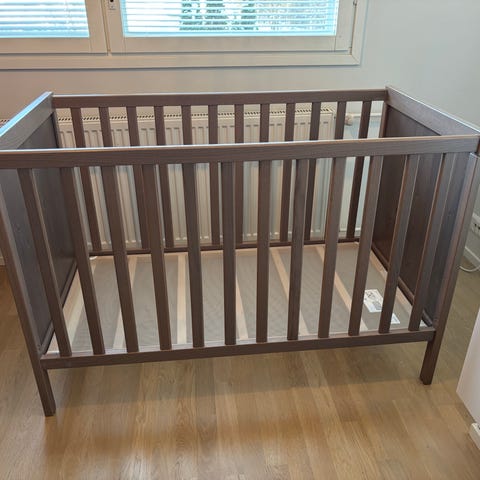 Mummolassa ollut pinnasänky on siistissä kunnossa. Sängyn pohjan saa eri tasoille ja sängystä saa irroitettua laidan kun lapsi kasvaa. Patja (Ikea) on 8 cm paksu ja siinä on irroitettava päällinen. Patja on siistissä kunnossa. Lisäksi löytyy kuvassa näkyvä lisälaita (Ikea) mikä on ollut käytössä kun pinnasängyn laita on poistettu. Kaikki ostettu uutena Ikeasta. Yksittäin sänky 90 €, patja 20 € ja lisälaita 10 €. Koko setti 110 €. Nouto Vuosaaresta.