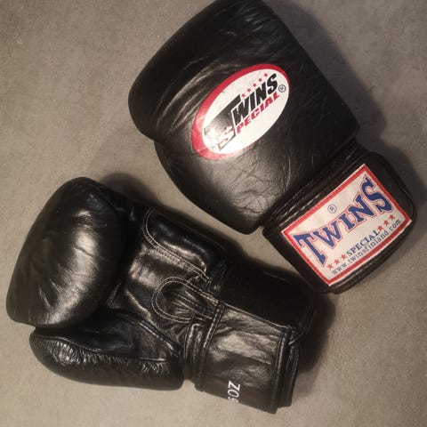 Twins Special nyrkkeilyhanskat mustat. 16 unssiset. Sopii mainiosti sparriin, koska on todella hyvin pehmustettu. Käy myös säkkiin.