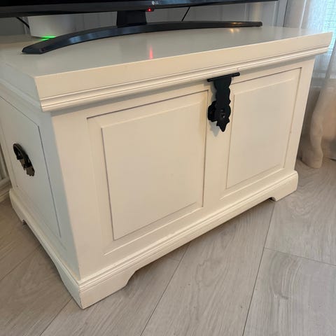 Vanha arkku, toimii myös sohvapöytänä.