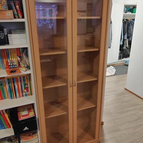 Siisti ja ehjä, ei kolhuja. Leveys 90 cm alaosa - 96 cm yläosan koristelistoilla. Syvyys 37 cm - 38 cm yläosan koristelistalla. Ovet ja joitain hyllyjä saa irroitettua kuljetusta varten, painava. Omat kantajat mukaan.