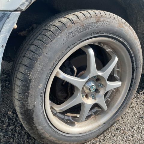Suorat vanteet. Kaksi kumeista sisälaidalta syötyjä kun ollut kulmat persiellään. Mersun keskireikä ja vag sovitetenkaat paikallaan