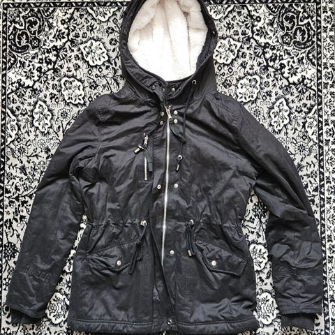 Myydään hyväkuntoinen musta talvitakki kokoa xs, irrotettavassa hupussa tekoturkis. Vyötäröllä kiristysnyöri. Myös noudettavissa.