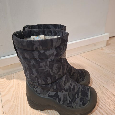 Myydään uutena ostetut parina talvena käytetyt kuoma merkkiset lasten talvikengät, koko 24. Väri musta. Kengissä on lämmin vuori ja paksu pohja, joka eristää kylmää vastaan. Pohjassa on karkea kuviointi, joka parantaa pitoa liukkaalla alustalla. Soveltuu talvikäyttöön ja ulkoiluun kylmällä säällä.