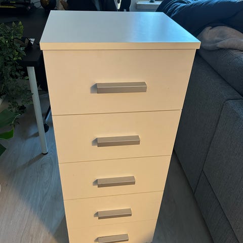 Hyväkuntoinen valkoinen lipasto. Ei huomattavaa kulumaa. Nouto.