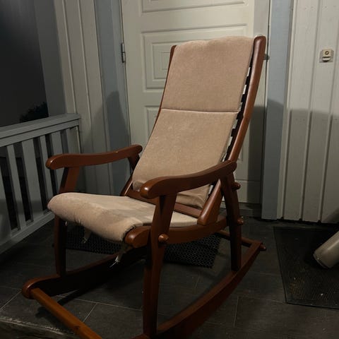 Askon musta keinutuoli. Hyävkuntoinen. Istuinosa ja selkänojan siistissä kunnossa. Käsinojassa ja jalaksissa hiukan kulumaa. Vain nouto.