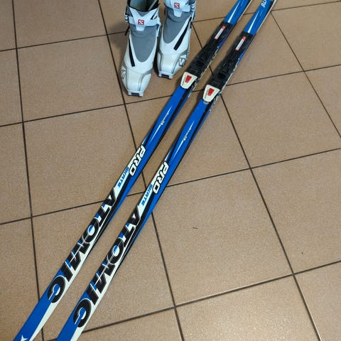 Sukset 148cm, monot kokoa 36 ja sauvat 135 cm. Hyvässä kunnossa, voideltu säännöllisesti.