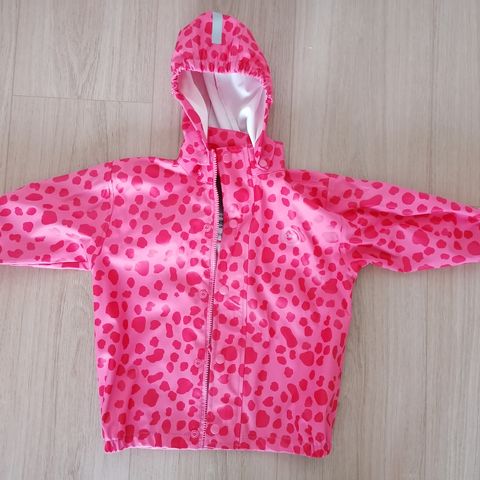Vähän käytetty KappAhlin sadetakki, jossa fleecevuori. Heijastimet hihoissa ja selässä. Irrotettava huppu.