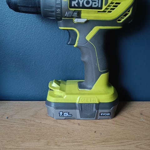 Uusi Ryobi akkuporakone, laturi ja akku ja laukku vihreä
