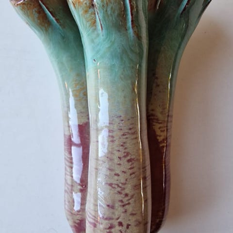 Vanha puristelasimaljakko, Karhulan lasi. Korkeus 18,5 cm, halkaisija 5,5 cm. Nouto Jätkäsaari, kulkeutuu Helsingin keskustaan.