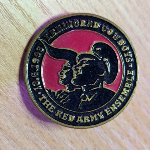 Pinssissä 12.6.1993 vuosiluku. Yhtye esiintynyt puna-armeijan kuoron kanssa? Halkaisija n. 3 cm. Kirjeposti 2,75€.