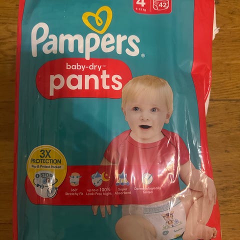 Pampers Premium Protection Pants -vaippahousut, koko 4, painoluokka 9–15 kg. Pakkauksessa 31 kappaletta vaippahousuja. Soveltuvat käytettäväksi vauvoille ja taaperoille, jotka tarvitsevat koon 4 vaippoja. Vaippahousut puetaan kuin alushousut ja ne on tarkoitettu kertakäyttöön.