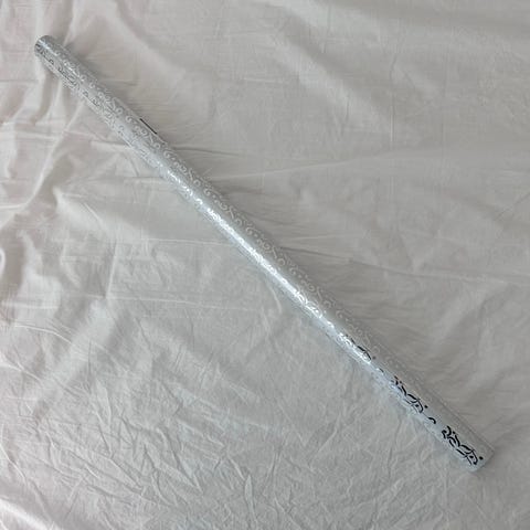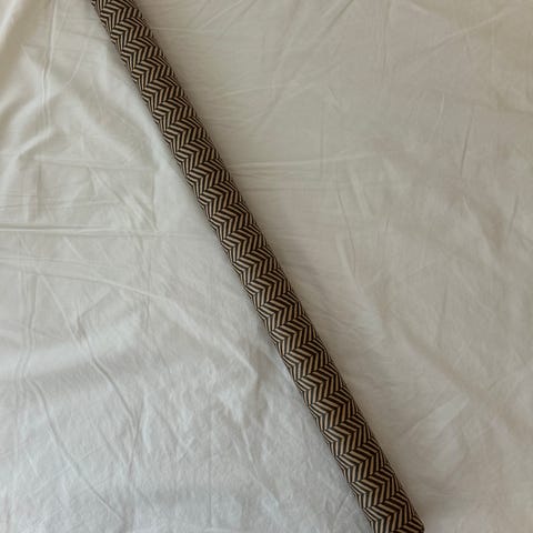 Lahjapaperia n. 4 m. Rulla on avattu, mutta sitä on vielä jäljellä n. 4 m. Se on käyttämätöntä ja siten todella hyvässä kunnossa, kuin uusi. Rullan leveys n. 70 cm. Materiaali paperia, ruskealla pohjalla punaisia kuvioita. Hinta 2€. Nouto Espoo (esim. Kauklahti / Lippulaiva / Espoontori).