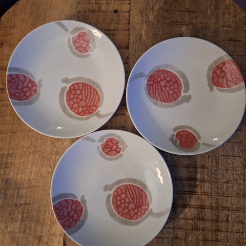 Myydään Pentikin vaaleanpunainen lautanen, N-kirjaimella. Halkaisija 16cm. Kunnoltaan moitteeton. 👌