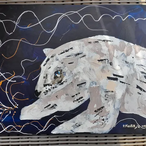 Hopeanväriset kehykset 23x32 cm. Jääkarhumaalaus. Omaa tuotantoa.