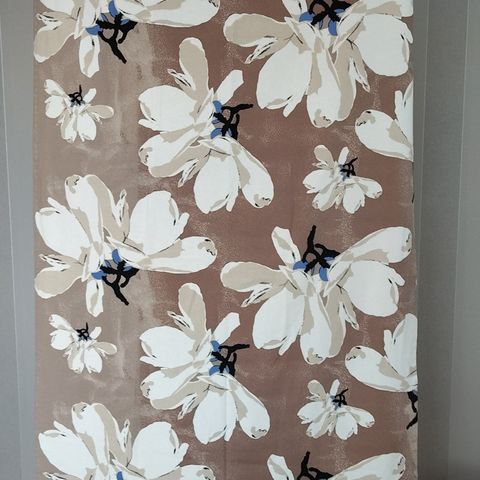 Käytettynä hankittu kangas, joka ommeltu ja käytetty ikkunaverhona. Purettu ompeleet käytön jälkeen, näkyy kuvassa. Nouto ja Toridiili.