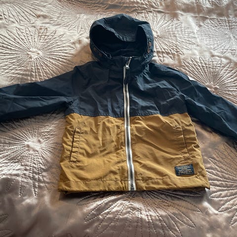 H&M denim lasten hupparitakki, koko 98. Takissa on farkkukankainen etu- ja takaosa sekä harmaat collegehihat ja huppu. Väri on kirjava: sininen denim yhdistettynä harmaaseen collegekankaaseen. Materiaali on denim ja collegekangas, malli sopii unisex-käyttöön. Takissa on edessä napitus ja taskuyksityiskohtia. Soveltuu arkipukeutumiseen lapselle, joka käyttää kokoa 98.