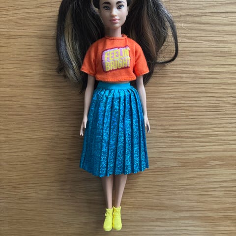 Hyväkuntoinen barbi, barbie fashionistas 143 hahmo, seuraavan leikkijän leikkeihin.