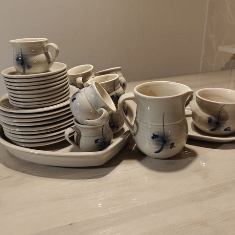 Kuvan astiasto. Tarjoa hintaa. Viimeisen kuvan 14 nimikkomukia voi jättää tarjouksesta pois, jos ei halua niitä.