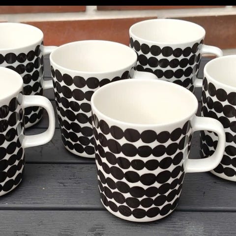 Puutarhakutsut mukit Marimekko, uudenveroiset. Vain nouto. 40e yhteensä.
