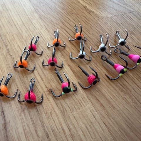 Uusia jasu värikoukkuja koko #8 ja #12, väreinä papukaija sekä oranssi. 2€/pkt. Saatava myös yksittäisiä 1€/kpl/tarjous. Postitus onnistuu.