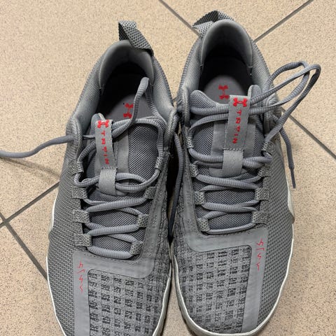 Under Armour lenkkarit, koko 43. Väri tumman harmaa, oranssit logoyksityiskohdat ja valkoinen pohja. Päällinen hengittävää tekstiilimateriaalia, nauhakiinnitys. Sopivat yleiseen liikuntaan ja vapaa-aikaan, käytetty vain muutamia kertoja teinin jalassa ulkona vapaa-aika kenkinä. Koko ehkä vähän nafti, lähempänä 42