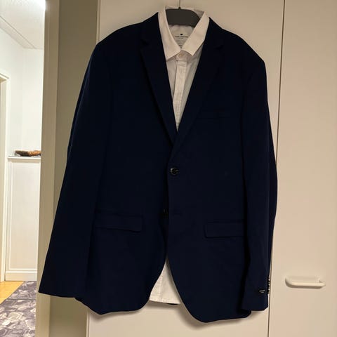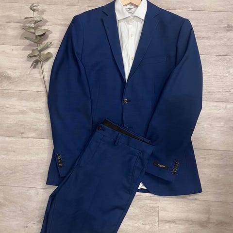 Jack & Jones Premium miesten puku, super slim -mitoitus. Pukuun kuuluu sininen takki ja yhteensopivat housut. Koko on 48. Materiaalina on polyesteri.Pukua käytetty pari kertaa.