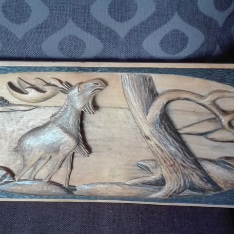 Myydään upea, käsin kaiverrettu puinen seinätaulu, halkaisija noin 60 cm.