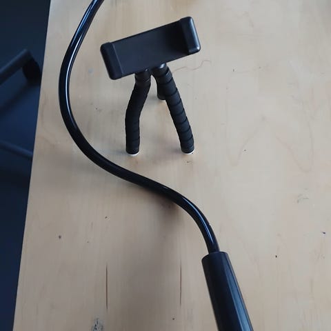 Hyväkuntoinen kolmijalka puhelimelle.
