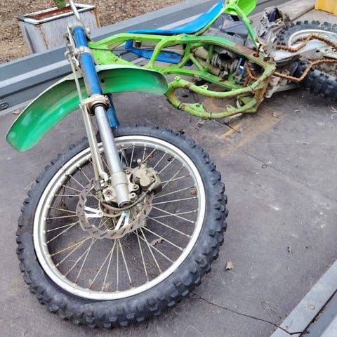Huonossa kunnossa kawasaki kx125 -91vm tankki pakoputki sulattanut kolon mutta ei läpi.