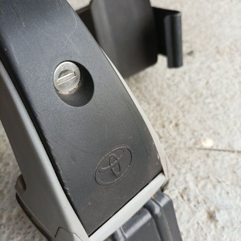 Toyota Corolla 5D HB kattotelineet. Alumiiniset poikittaiskiskot, joissa muoviset kiinnikkeet ja Toyota-logo. Telineissä merkintä Corolla 5D HB ja enimmäiskuorma 75 kg. Soveltuvat tavaran, kuten suksiboksin tai kuljetustelineiden, kiinnittämiseen auton katolle. Kiinnitys auton kattorelingeihin tai ovenpieliin mallikohtaisten jalkojen avulla. Sopii ainakin E 120 tunnuskoodin malleihin. Voit tulla sovittamaan jos epäröit yhteensopivuutta, mutta ota avainsarjat mukaan sillä en ole varma minkä numeroinen avaaja sopii. Yleistyökalulla kuitenkin kiinnitettävissä normaalisti.